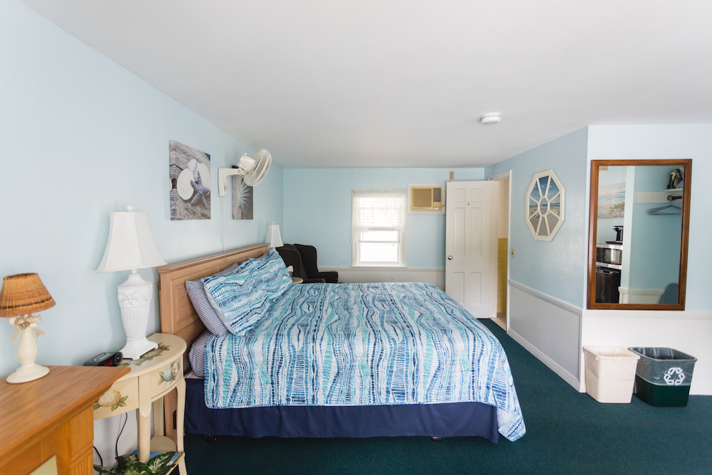 Our Deluxe King Futon room includes a king size bed and a comfortable futon, dining table, electric fireplace and a HD Television with cable.